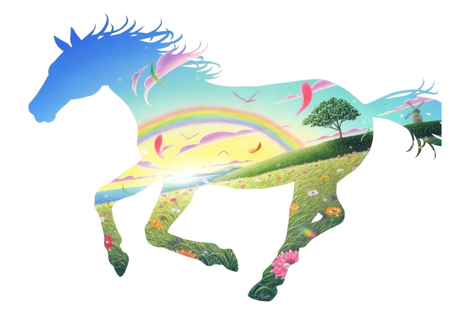 四季をテーマにした作品を得意とし、アクリルガッシュ、筆、エアブラシを使い制作。